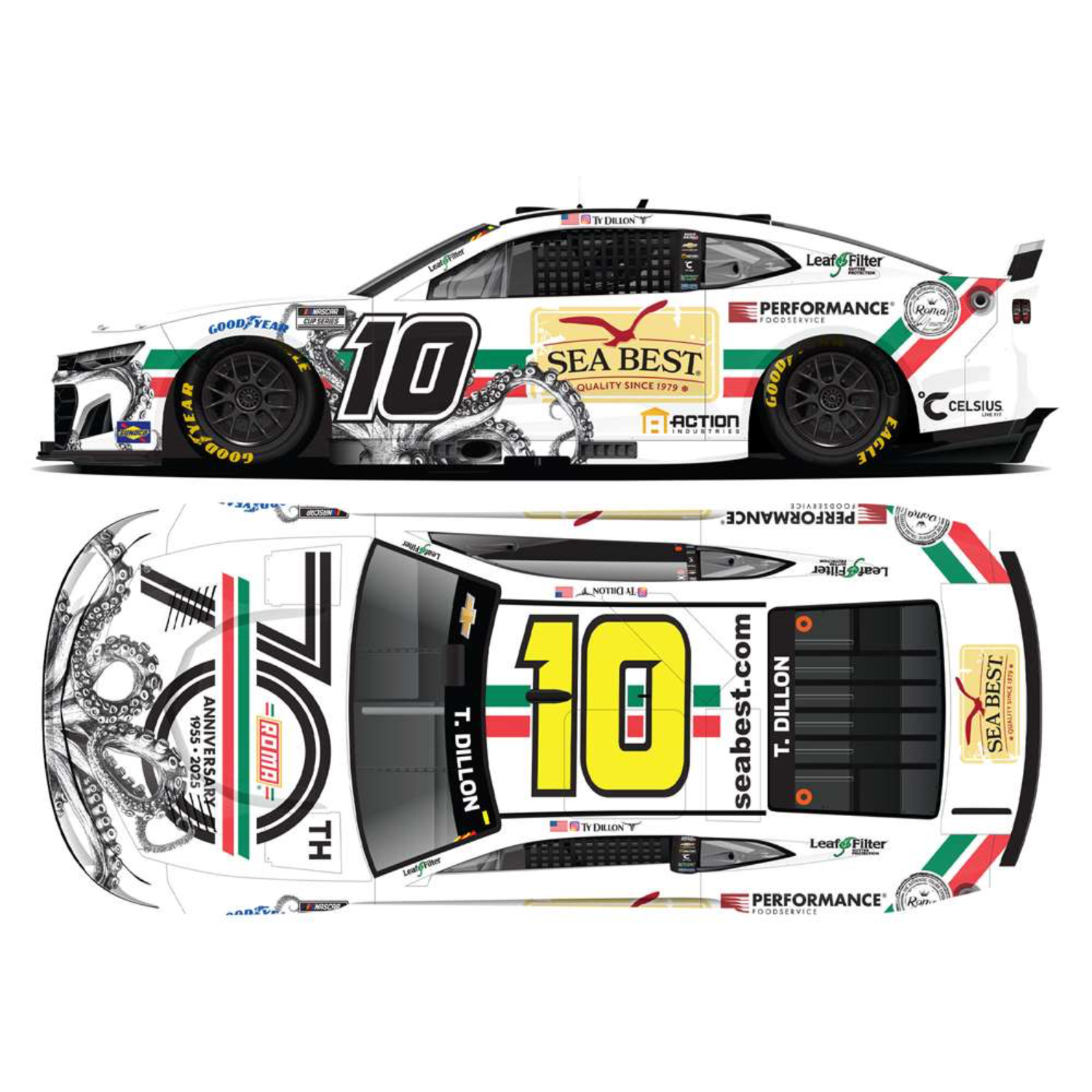 ** Précommande ** 2025 Ty Dillon #10 Roma 70th Anniversary/Sea Best